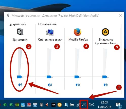 - Поднять все регуляторы громкости, которые были опущены вниз до упора, вверх. Выбрать такой уровень громкости, который бы соответствовал пожеланиям пользователя.