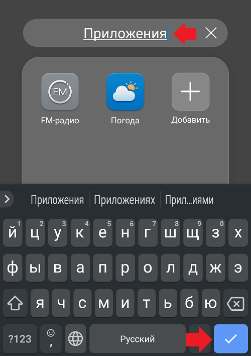 Теперь же нужно придумать имя для созданного каталога и тапнуть на кнопку «Ок».
