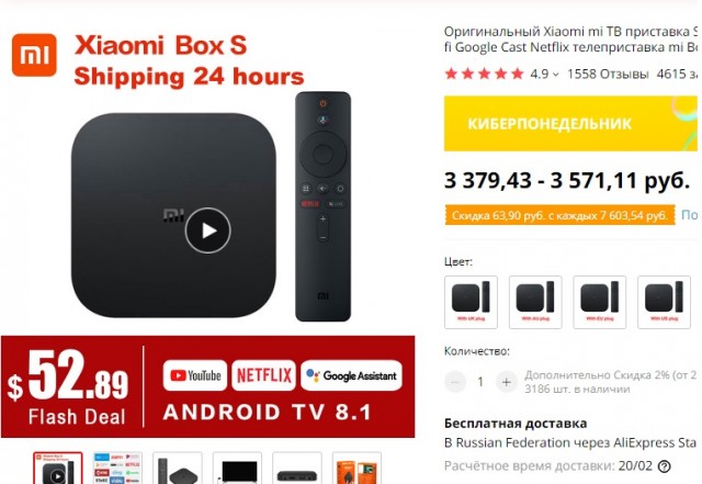 4к медиаплеер от известного китайского бренда, поддерживает HDR видео и несколько разных языков. Поиск контента осуществляется с помощью голоса совместно с пультом ДУ. На борту операционная система Android TV 6.0, очень удобная и простая. Может взаимодействовать с другими устройствами по средствам подключения через интерфейсы.