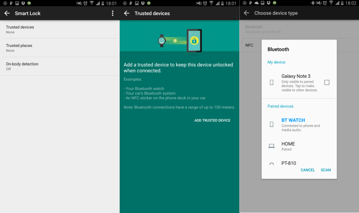 Это, скорее всего, самый безопасный вариант Smart Lock из всех. Если бы доверенным устройством было носимое устройство IoT, такое как фитнес-браслет или смарт-часы, то ваш телефон, по сути, всегда будет готов для вас, когда вы носите их вместе. Если ваш телефон потерян или украден, экран блокировки включится, как только сигнал сопряжения прервется.