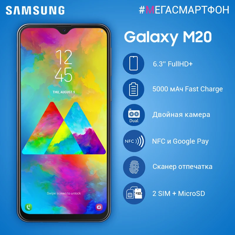 Обзор смартфона Samsung Galaxy A20 Смартфон Samsung Galaxy A6 32GBПроцессор: Exynos 7870 Неплохой смартфон 2018 года, среднебюджетник который сейчас продаётся по цене бюджетного устройства. Он получил 8-ядерный процессор Samsung Exynos 7870 и 3 Гб оперативной памяти, его можно комфортно использовать на повседневной основе и не переживать за быстродействие, с классическими задачами современного человека смартфон справится на ура. Galaxy A6 имеет тонкий металлический корпус и небольшие рамки на экране, он удобно лежит в руке и не выскальзывает. 5,6-дюймовый дисплей имеет высокое разрешение и даёт пользователю картинку высокого качества. Основная камера на 16 Мп создана для панорамных фотографий и эффекта «боке». Фронталка с аналогичным разрешением имеет вспышку, так что можно делать селфи даже в ночное время. Невзирая на небольшой ресурс аккумулятора, отличная оптимизация системы сохранит его заряд на целый день. Имеется даже NFC модуль. Плюсы: — Экран Минусы: — Слабые камеры
