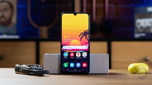 Обзор смартфона Samsung Galaxy A50 Лучшие бюджетные смартфоны SamsungСмартфон Samsung Galaxy A40Процессор: Exynos 7904 Топ-бюджетных смартфонов от Samsung открывает Galaxy A40, он получил 5,9-дюймовый sAMOLED FHD+ дисплей с минимальными рамками и каплевидным вырезом под фронтальную камеру. Экран излучает яркие цвета, просмотр контента доставит массу удовольствия. Смартфон изготовлен из прочного стеклопластика, на задней части находится сканер отпечатков пальцев. Устройство удобно лежит в руке и не вызывает минимального дискомфорта. За производительность отвечает средний по мощности процессор Exynos 7904 и 4 Гб оперативной памяти, поиграть в топовые игры на максимальных настройках не получится, но с другим он справляется на ура. Селфи-камера получила модуль на 25 Мп, она способна сделать классный снимок в любое время суток, ночные снимки получат сниженный уровень шумов. Аккумулятор ёмкостью 3100 mAh довольно мал для подобного железа и диагонали экрана, но функция быстрой зарядки позволит восполнить его ресурс за минимальное время. Плюсы: — Экран Минусы: — Слабый процессор