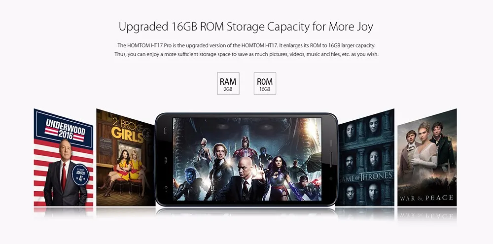 HOMTOM HT17 работает на 4-ядерном процессоре MediaTek MT6737, 1100 МГц и видеопроцессоре Mali-T720 MP2, имеет 8 гигабайт встроенной памяти и 1 гигабайт оперативной памяти. В телефоне есть слот для карты памяти до 128 гигабайт.